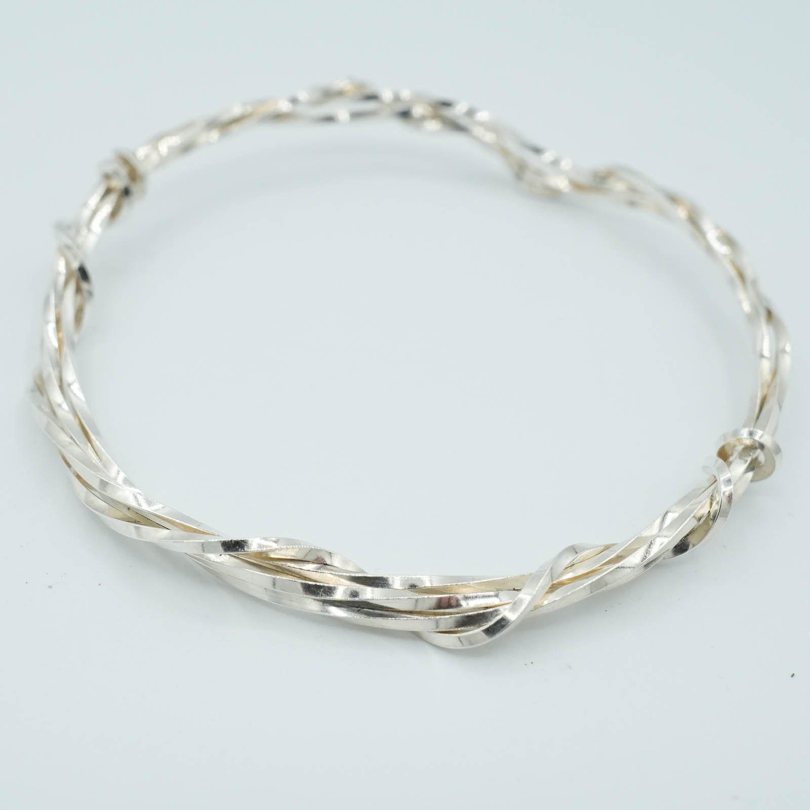 Get wrapped up in style with our Handmade Sterling Silver Wire Wrapped Bangle! This bangle is expertly crafted using high-grade sterling silver wire, creating a unique and eye-catching design. With its handmade touch, each bangle is one-of-a-kind. Add a touch of elegance to any outfit with this stunning accessory.