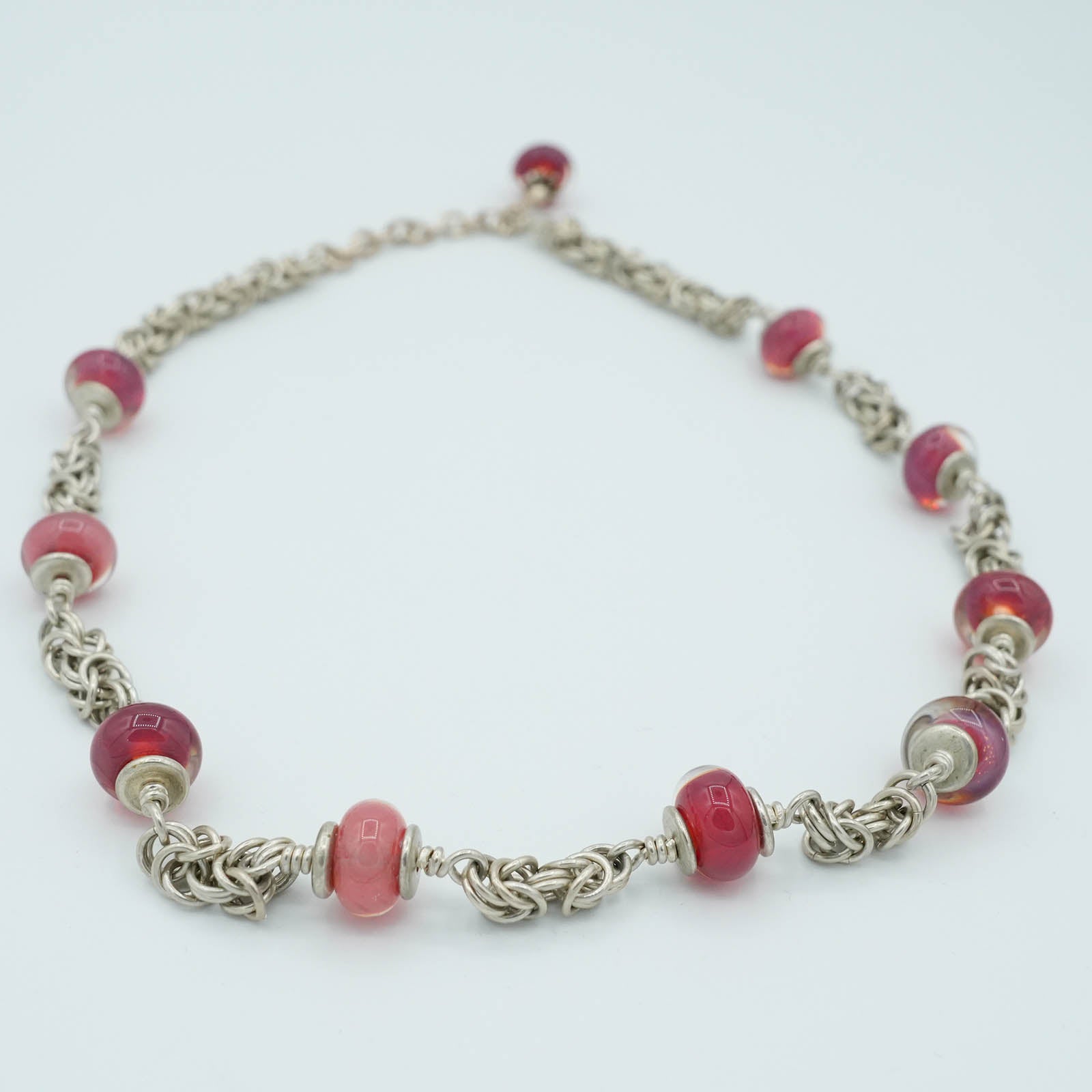 Sterling Silver Handmade Chain Necklace with Pink Glass Beads