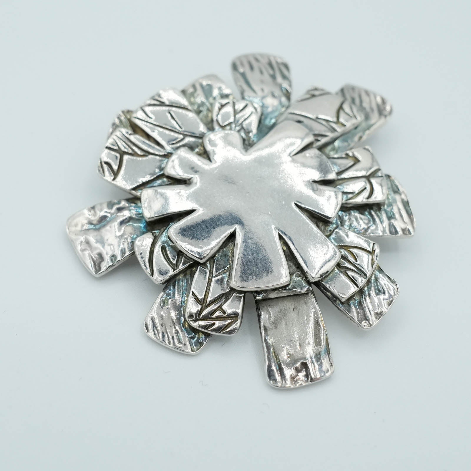 Textured Star Burst shaped Precious Metal Clay Pendant with Raised Texture and Patina